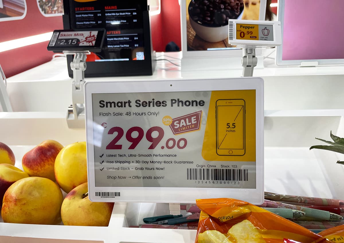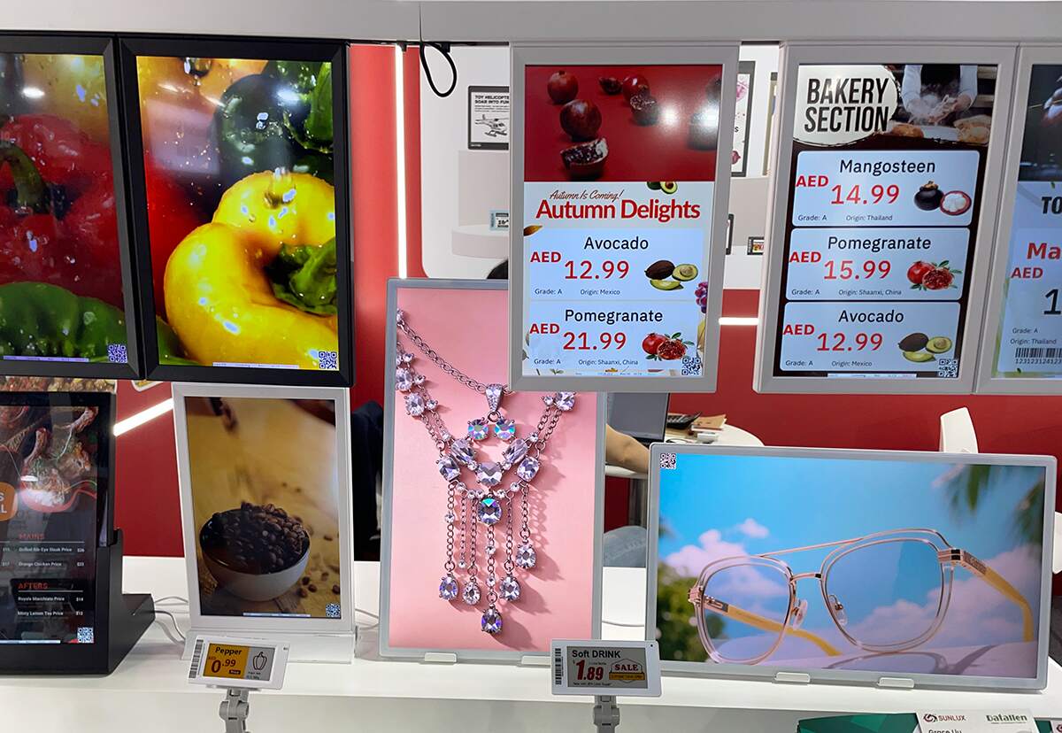 Paralelamente, Datallen presentó sus nuevas Etiquetas Electrónicas de Estantería (ESL) y Señalización Digital LCD. La serie ESL — que incluye modelos de cuatro colores, impermeables y para congeladores — permite actualizaciones de precios en tiempo real y una integración fluida con sistemas ERP.